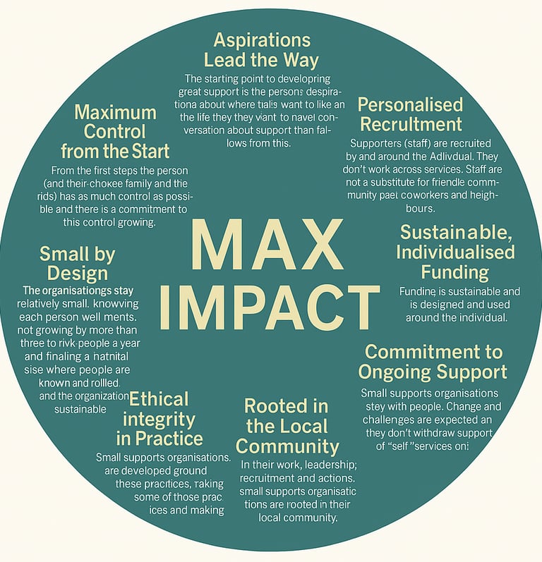 Each organisation is built around the person, their family, and community connections, providing an alternative to institutional or large-scale commissioned care.